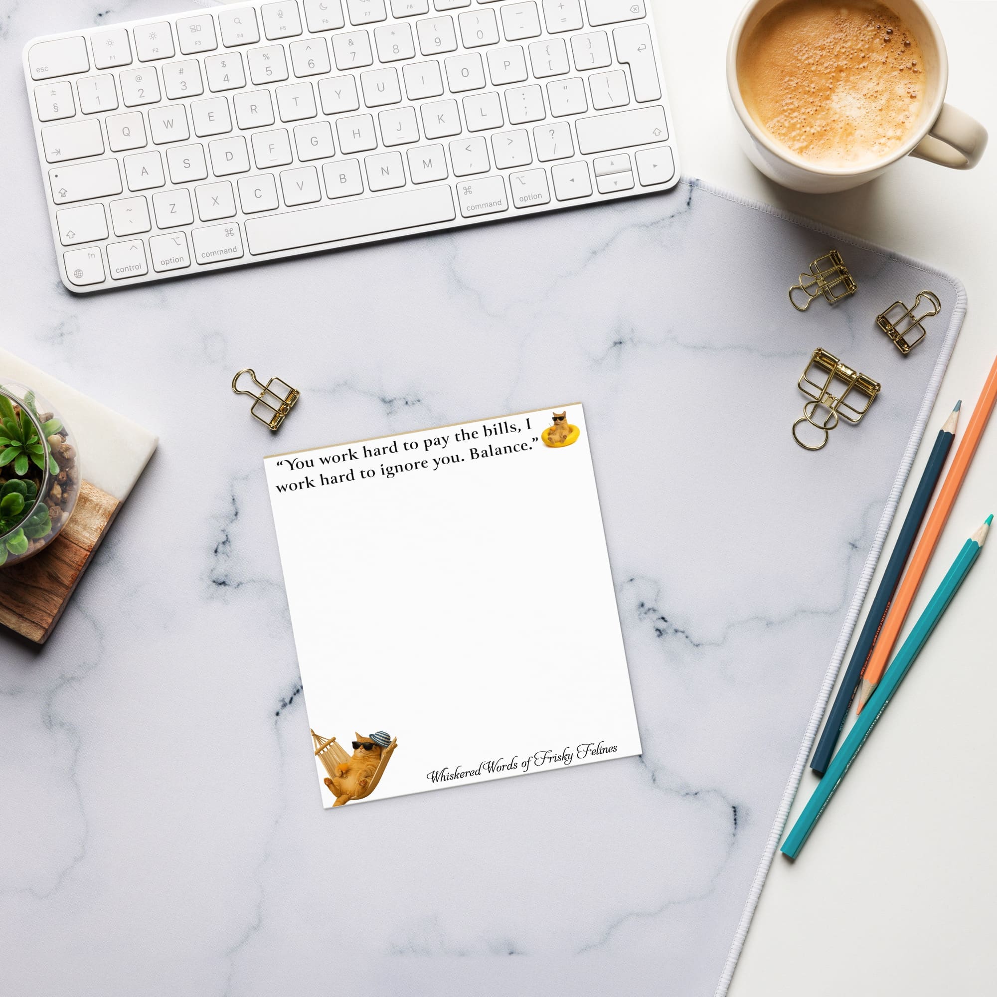 •Imprint: “You work hard to pay the bills, I work hard to ignore you. Balance.”